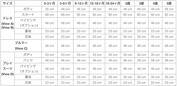 ※インチ・ヤードから換算しているためおおまかな目安とお考えいただき、型紙をカットしてから実際に必要な用尺をご確認ください。