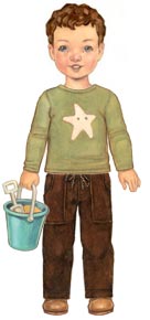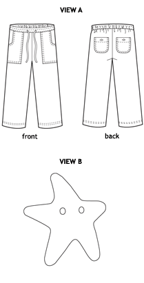 【男の子・女の子兼用】 おしゃれな手作り子供服 Oliver+S の男の子/女の子兼用パンツの型紙です。スターフィッシュ(ヒトデ柄)のTシャツ用ステンシルパターンつき。