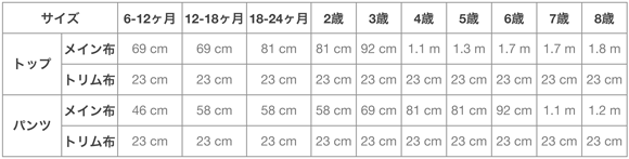 ※インチ・ヤードから換算しているためおおまかな目安とお考えいただき、型紙をカットしてから実際に必要な用尺をご確認ください。