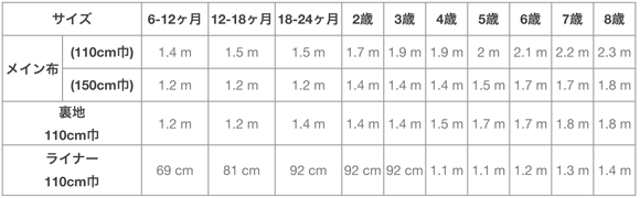 ■用尺:110または150cm巾の場合の用尺です。